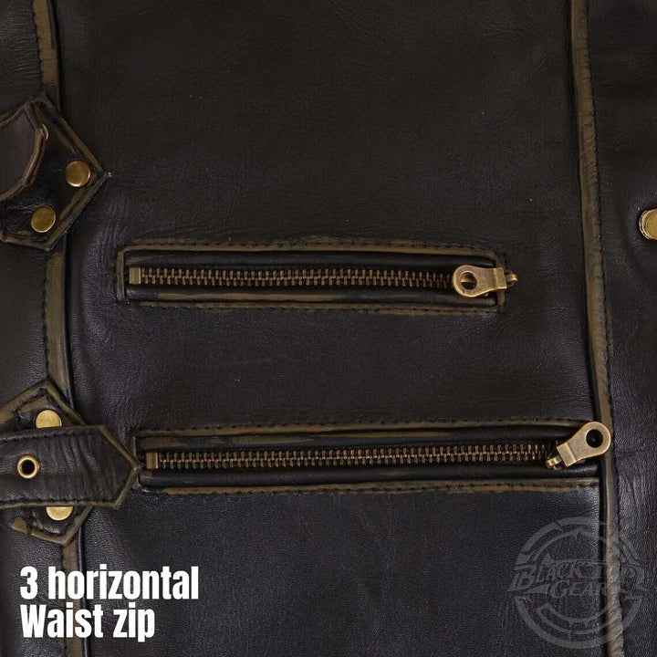- 6) 1 Vatical Front Zip on Chest And 3 Horizontal Zip on waist