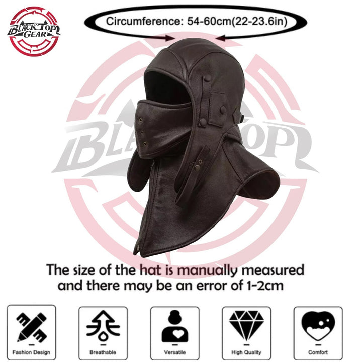 Introducing BLACKTOP GEAR 100% Genuine Leather Aviator Cap, a meticulously crafted homage to the iconic World War II design worn by both the Allied Air Force and German Luftwaffe. This Aviator/Trapper cap with a detachable collar and face cover seamlessly combines historical authenticity with modern comfort and style.