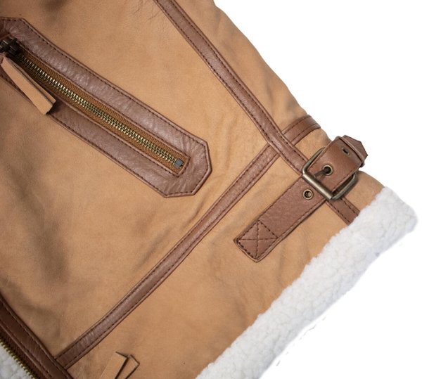 - The outside of the jacket is made of genuine leather