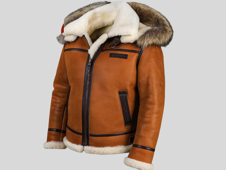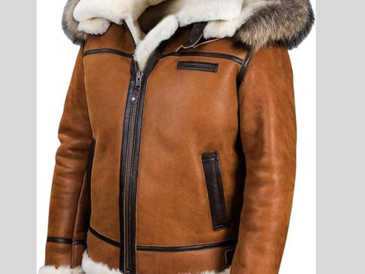 Embrace the cold in rugged luxury with this Men’s Hooded Shearling B3 Bomber Jacket. This contemporary take on the iconic B3 aviator jacket offers superior warmth and durability, merging authentic flight jacket heritage with a modern, practical design featuring a cozy hood.