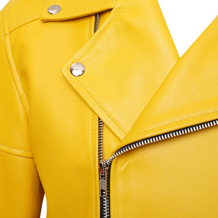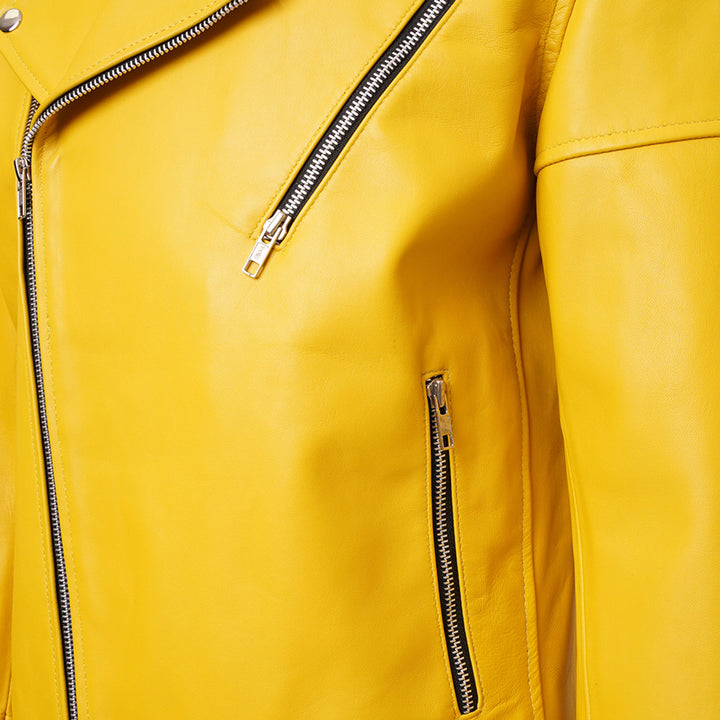 Hand crafted from a premium quality soft Sheepskin leather, boosting off with a flattering tailored cut with an eye-catching standout feature. A casually worn yellow jacket, and favorite of all ages.