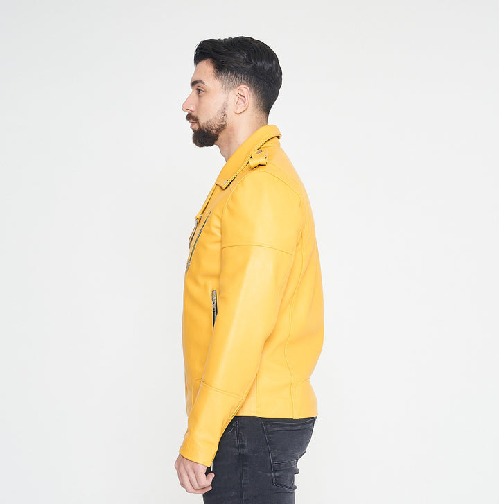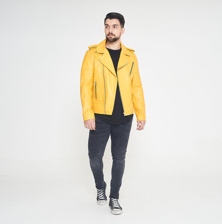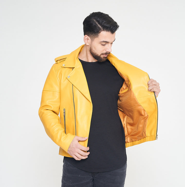 BLACKTOP GEAR proudly present our latest yellow biker style jacket for men, this impeccable tailored cut jacket has an amazing look, detailed features, and a sleek finish. It will hit all your boxes and become your top favorite choice, suited for any occasion.