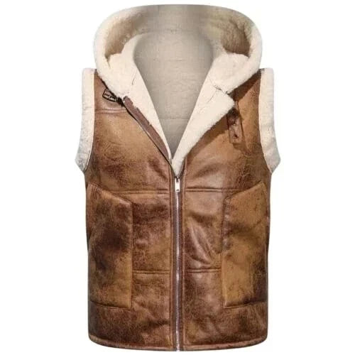 Step into winter with confidence wearing our Men’s RAF B3 Aviator Style Shearling Leather Vest, expertly tailored from authentic sheepskin leather. This premium-quality vest brings together rugged elegance and dependable warmth, making it an essential piece for your cold-weather wardrobe.