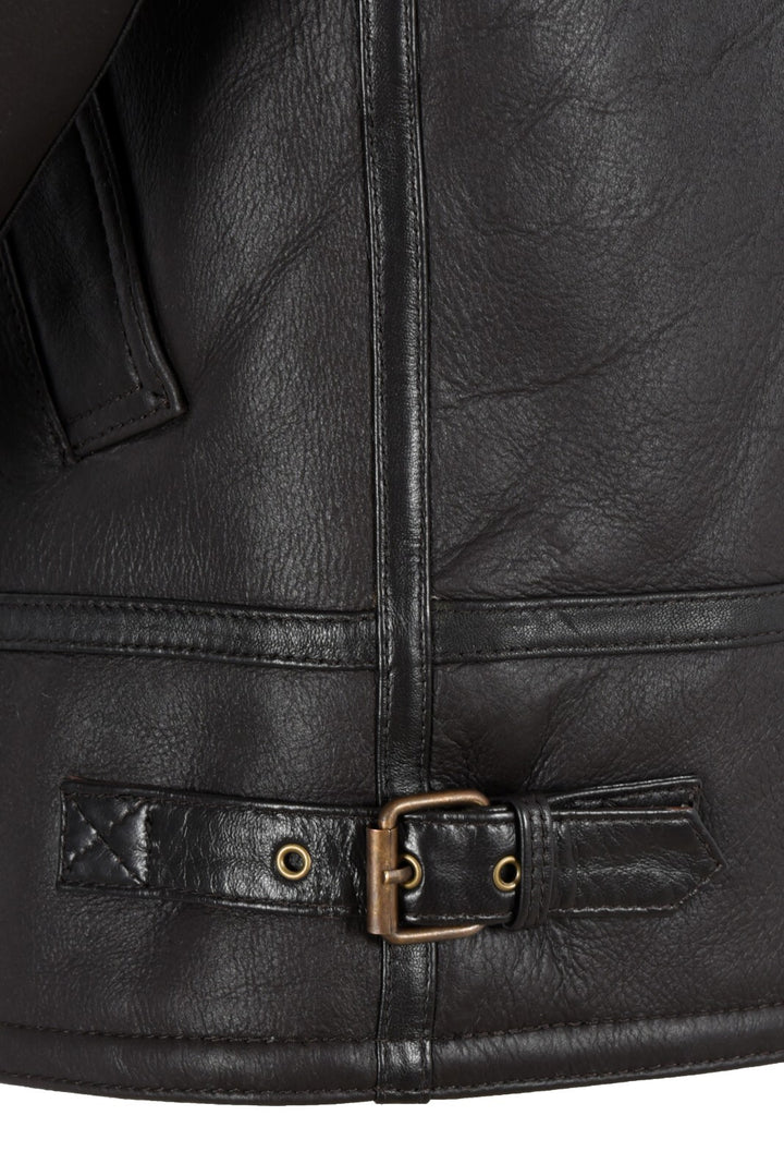 This lovely jacket is genuine 100% full Sheepskin Leather, On the Outside of the jacket it is a beautiful leather finish, and on the inside there is a very smooth, supple and warm thick sheepskin wool which is 15 mm thick, The jacket has two hand warmer slanted pockets, it also has a straps and buckles on the collar and 1 strap and buckle on the sides which are adjustable, All Seams have been reinforced, The zip is heavy duty..