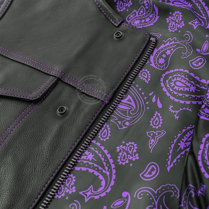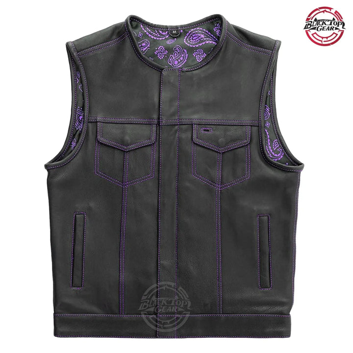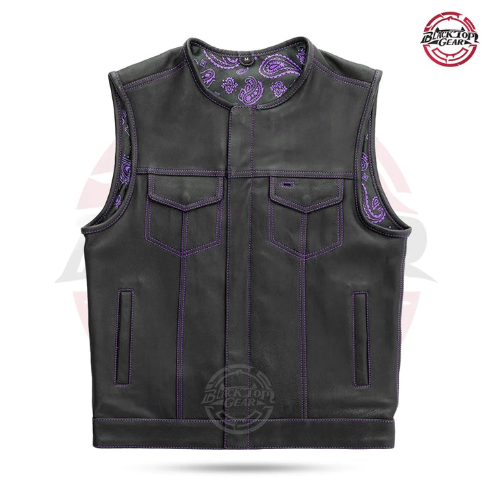 - Motorcycle CLUB VEST Purple Paisley Lining And Purple Thread Stitching