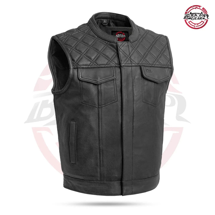 Men's Black Real Cowhide Leather Biker Motorcycle Vest Diamond Cut Club Quilted