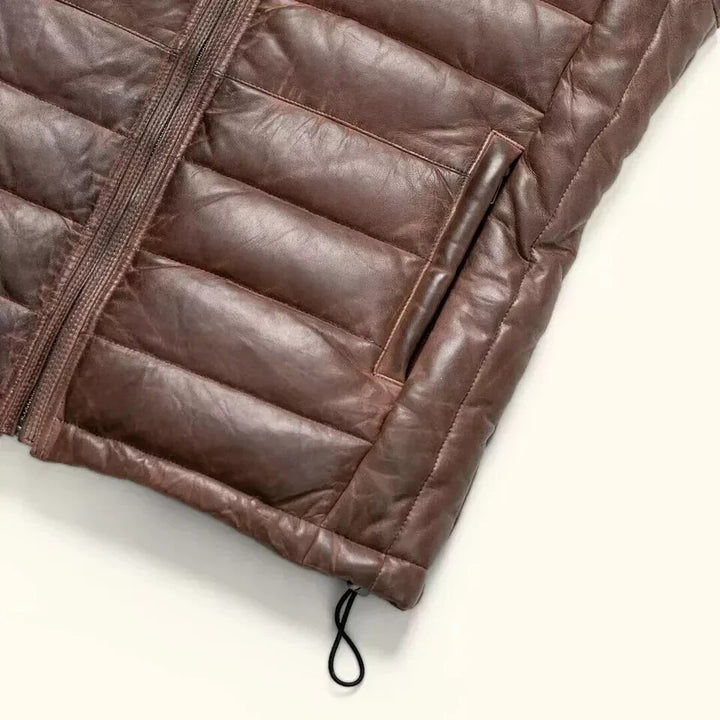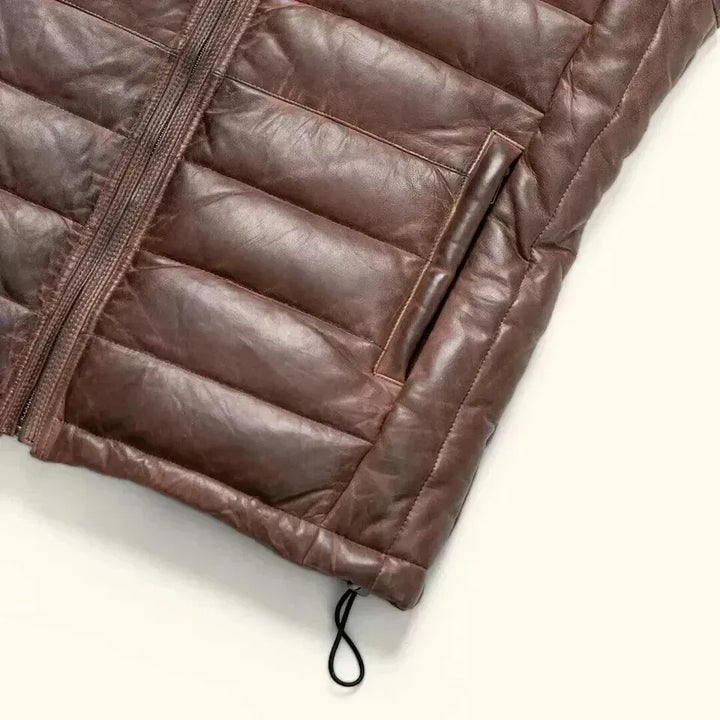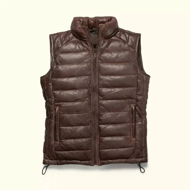Immerse yourself in the matchless comfort and style of our Leather Down Vest today.