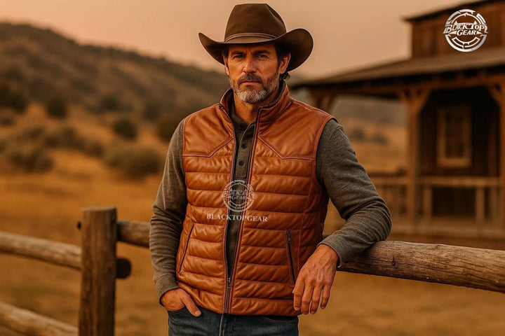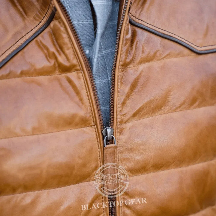 Upgrade your outerwear with the timeless appeal of our Brown Leather Puffer Vest for Men. Crafted with high-quality faux leather and detailed stitching, this sleeveless jacket delivers warmth without compromising on style. The quilted padding offers insulation, while the modern fit makes it perfect for casual and semi-formal wear.