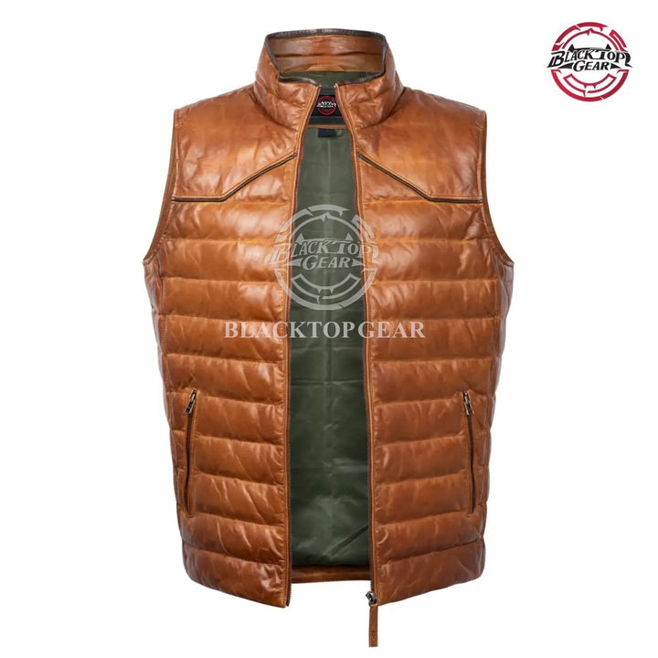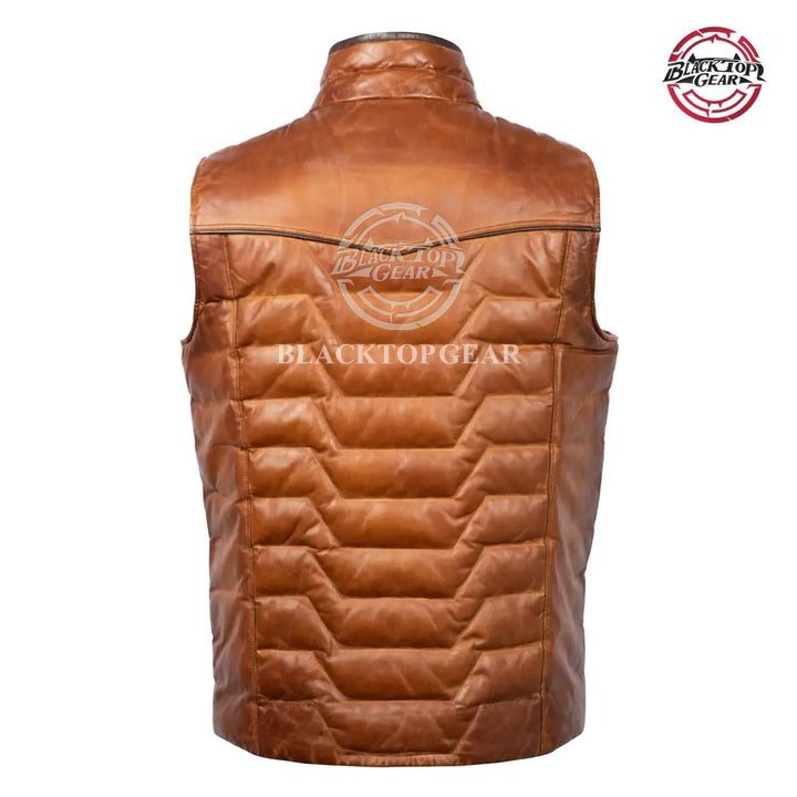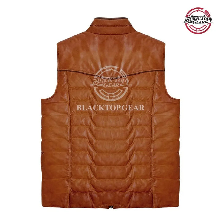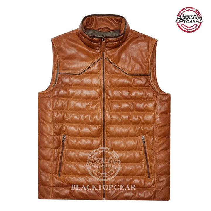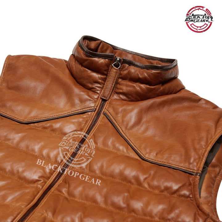 Men's Brown Puffer Quilted Real Leather Vest Lambskin Biker Motorcycle Jacket