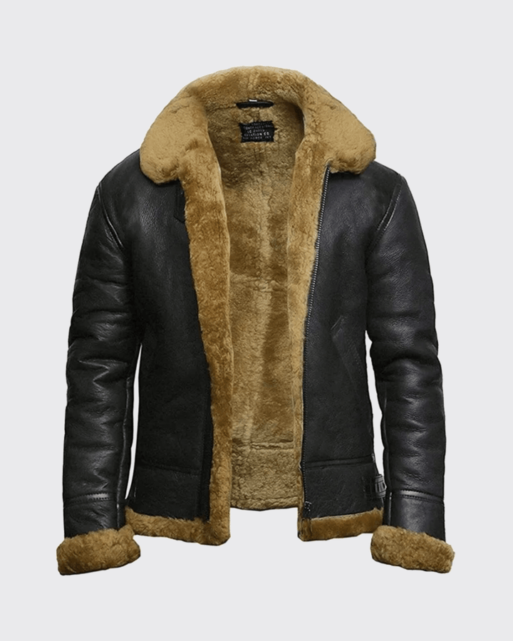Collar: Wide shearling collar for added warmth and vintage aviator look