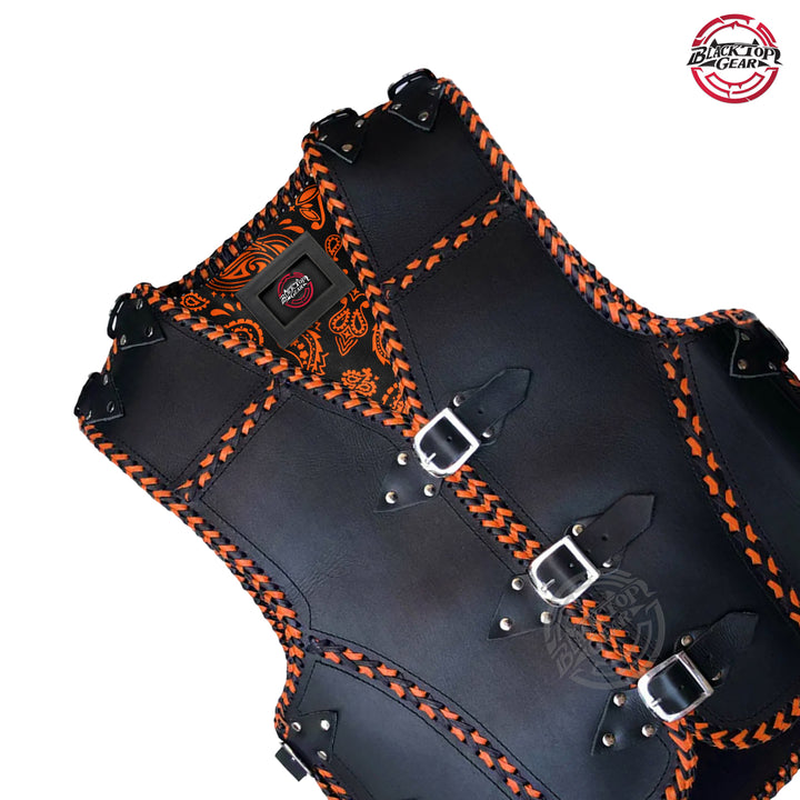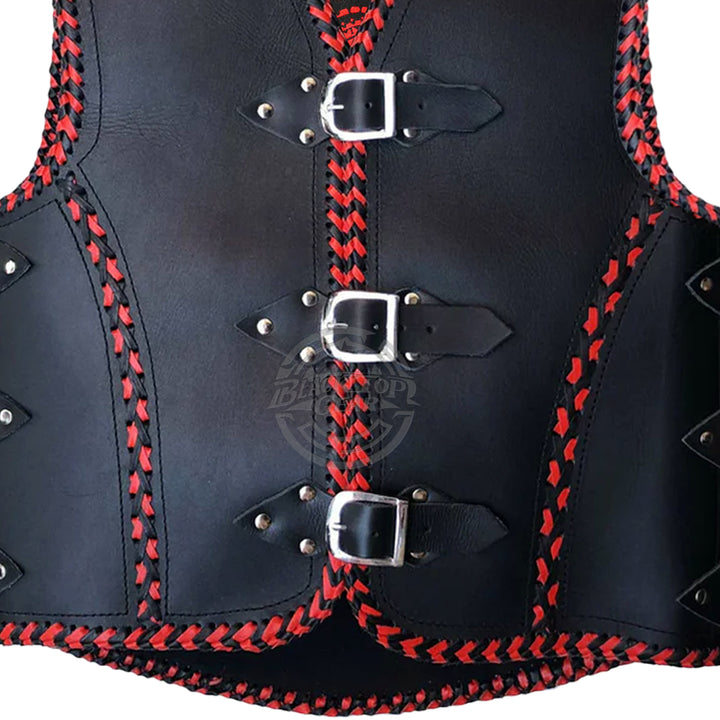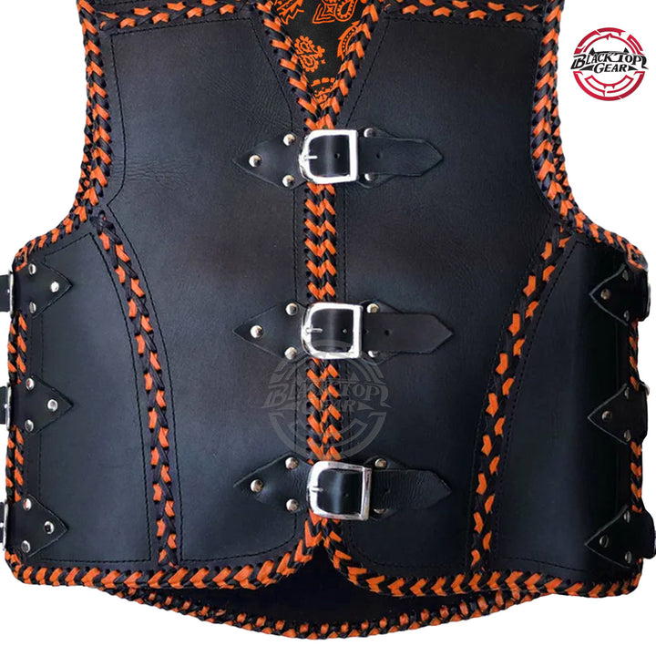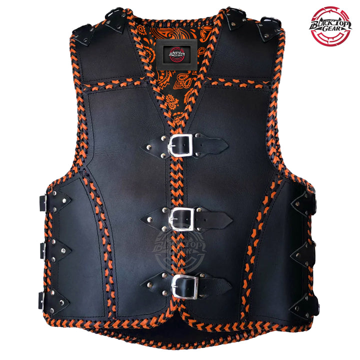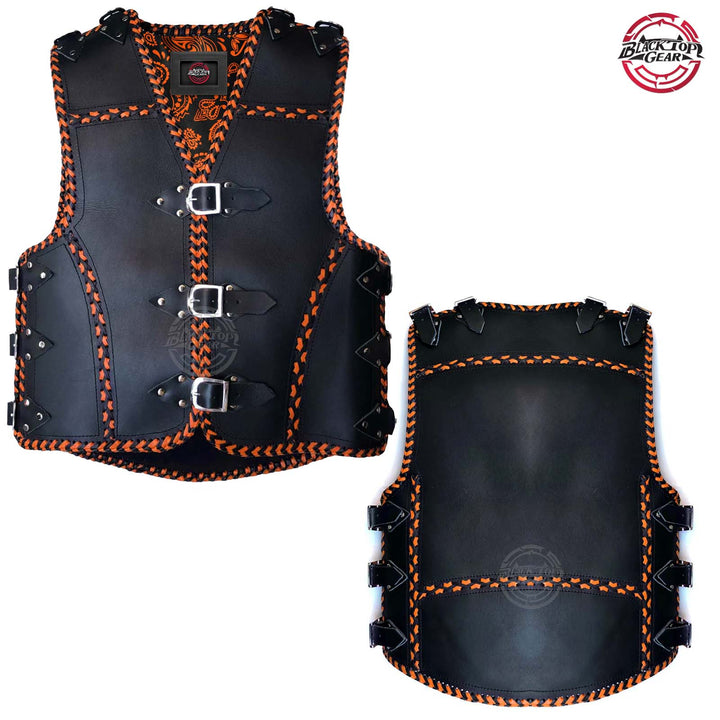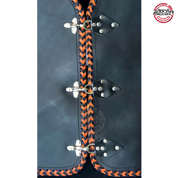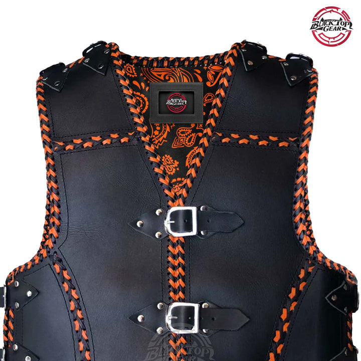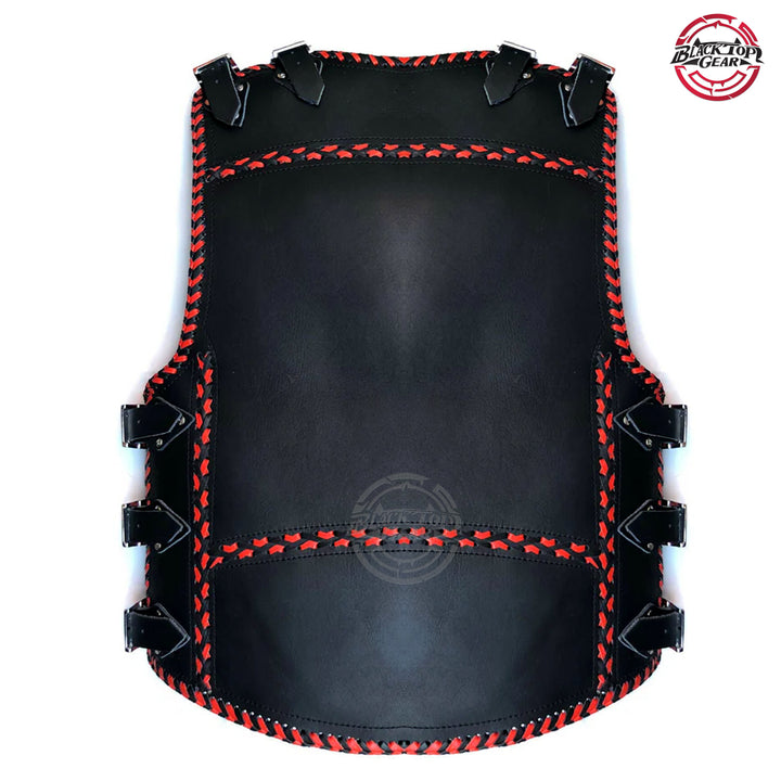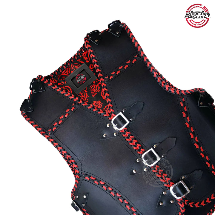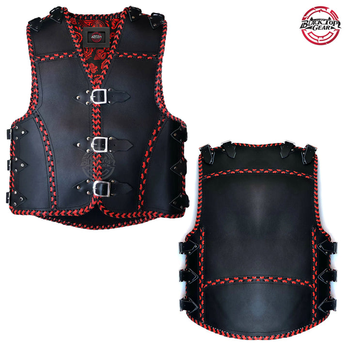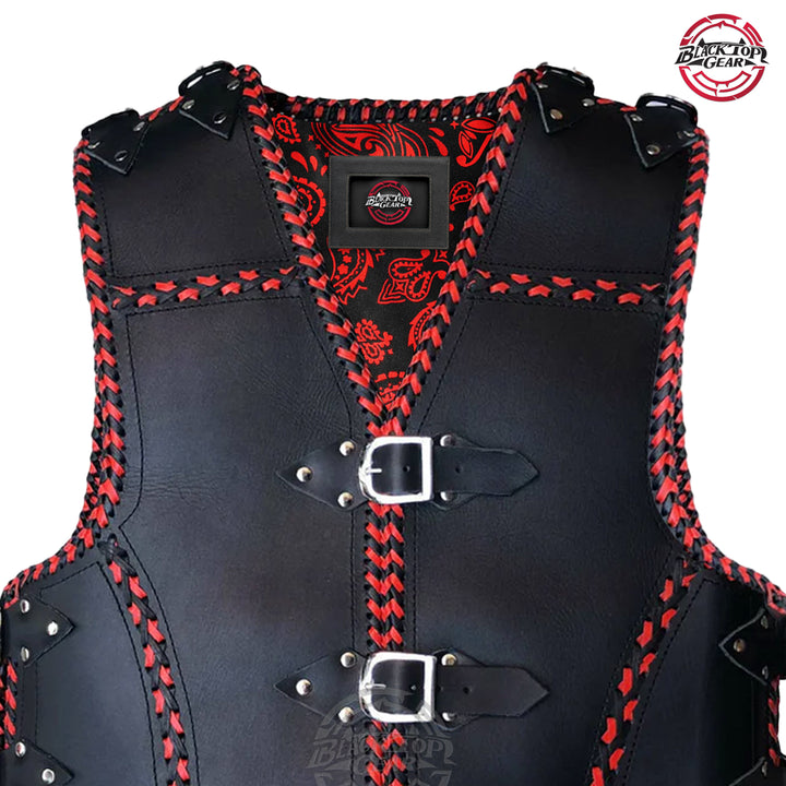 Men's Heavy Duty 3-4 MM COWHIDE Leather Motorcycle Club Vest Biker Red Braided