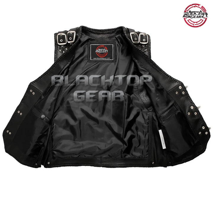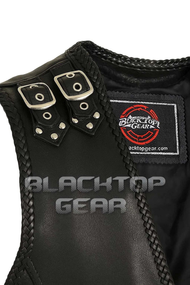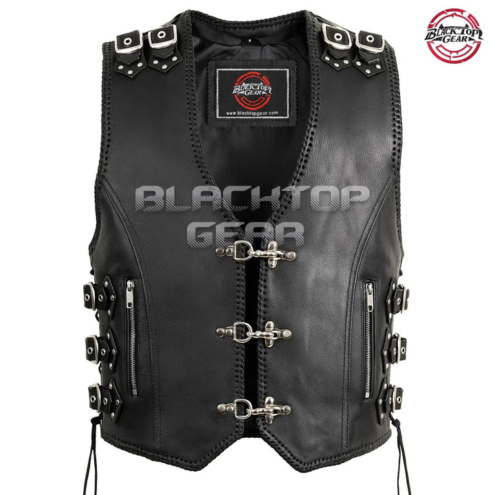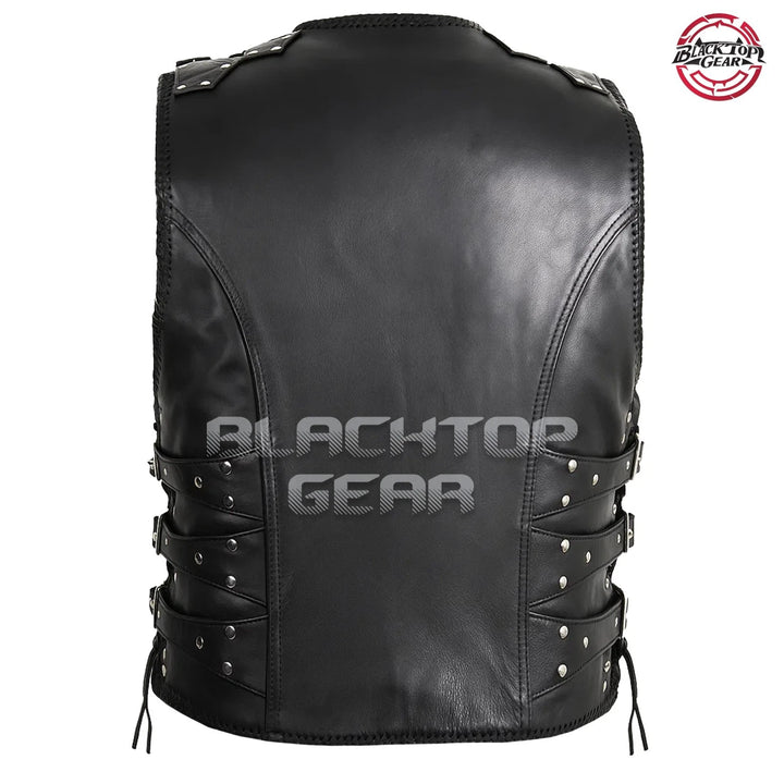 BLACKTOP Men's Heavy Duty Genuine Cow Leather Biker Vest Rocker Motorcycle Waistcoat
