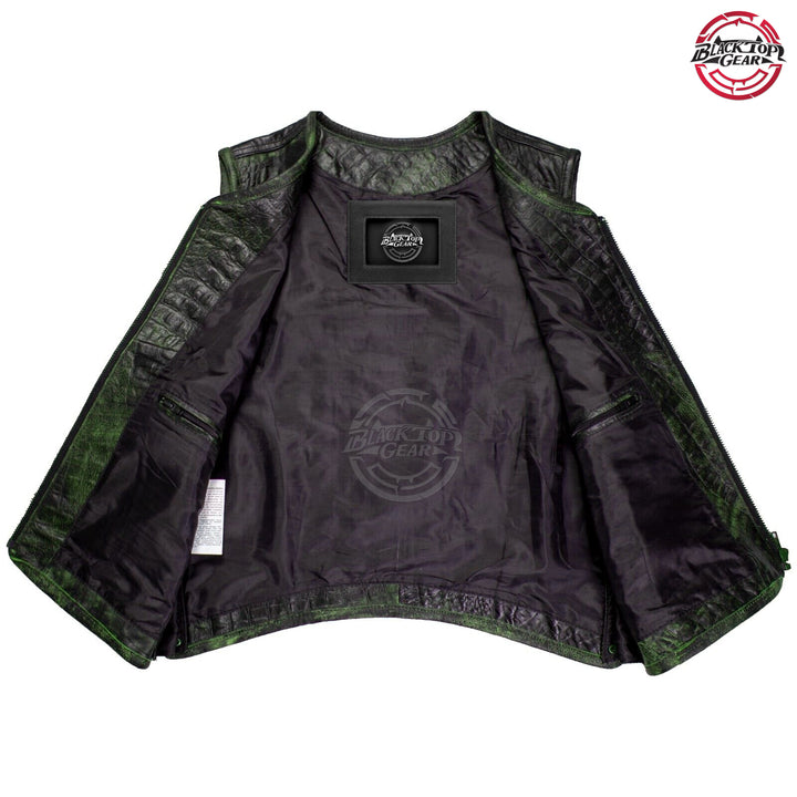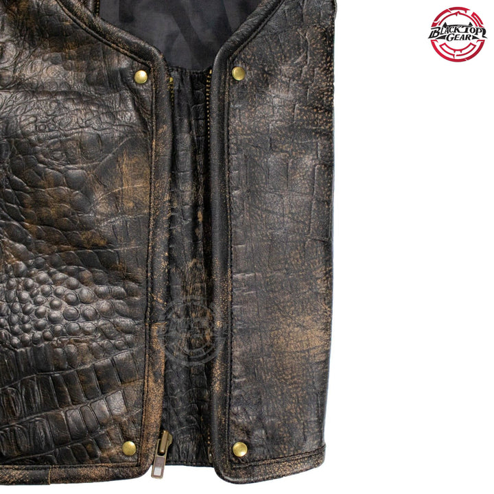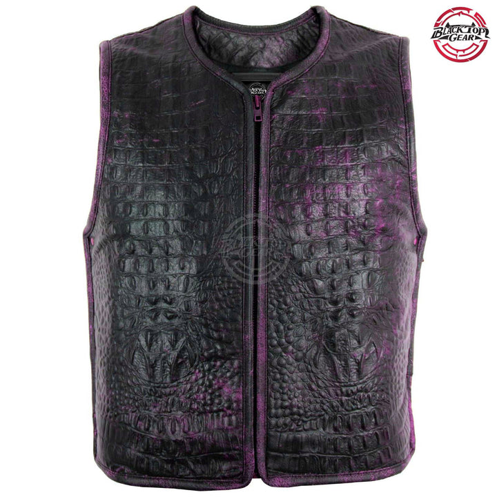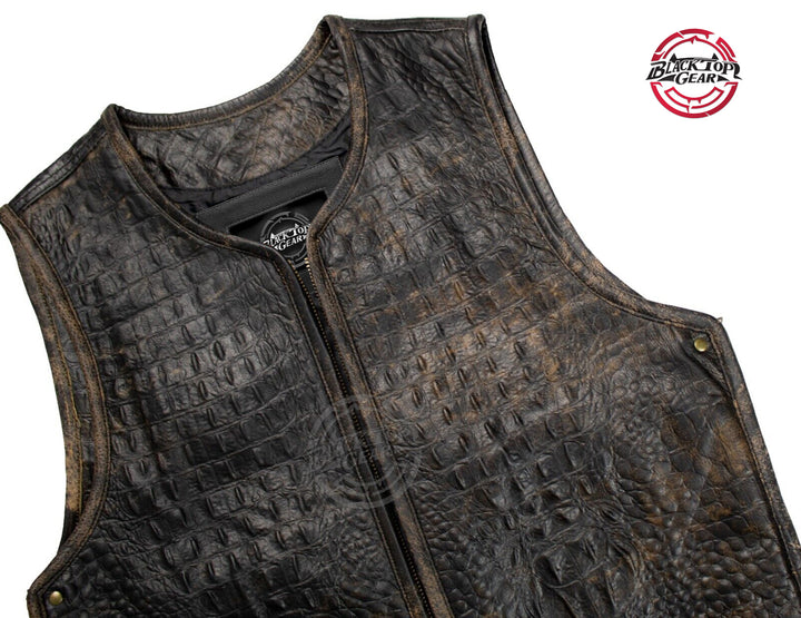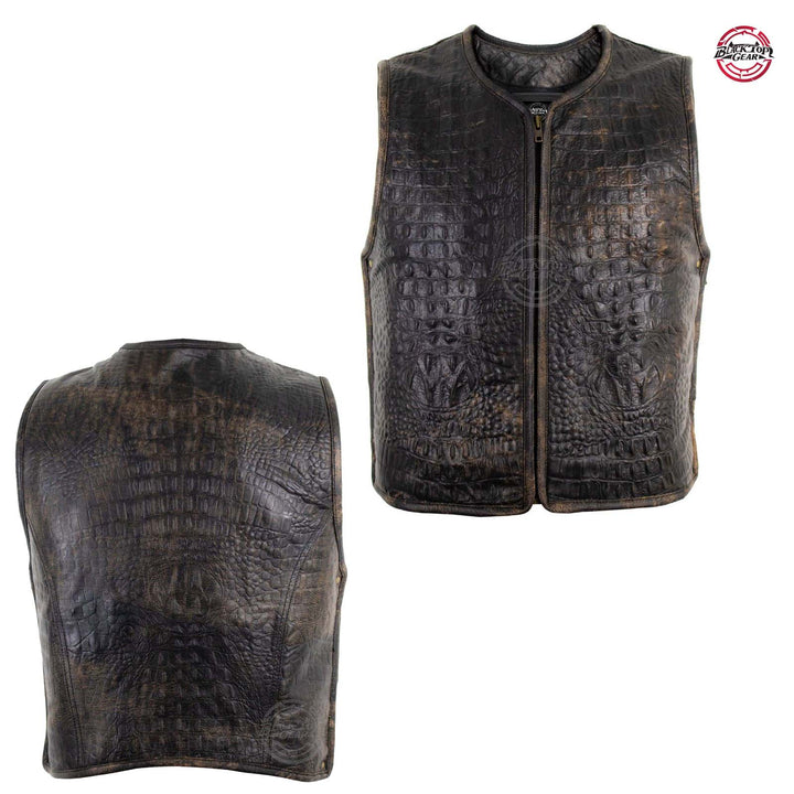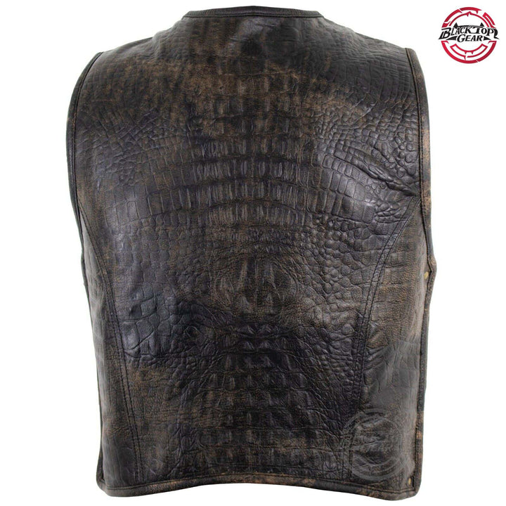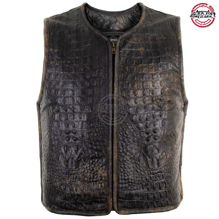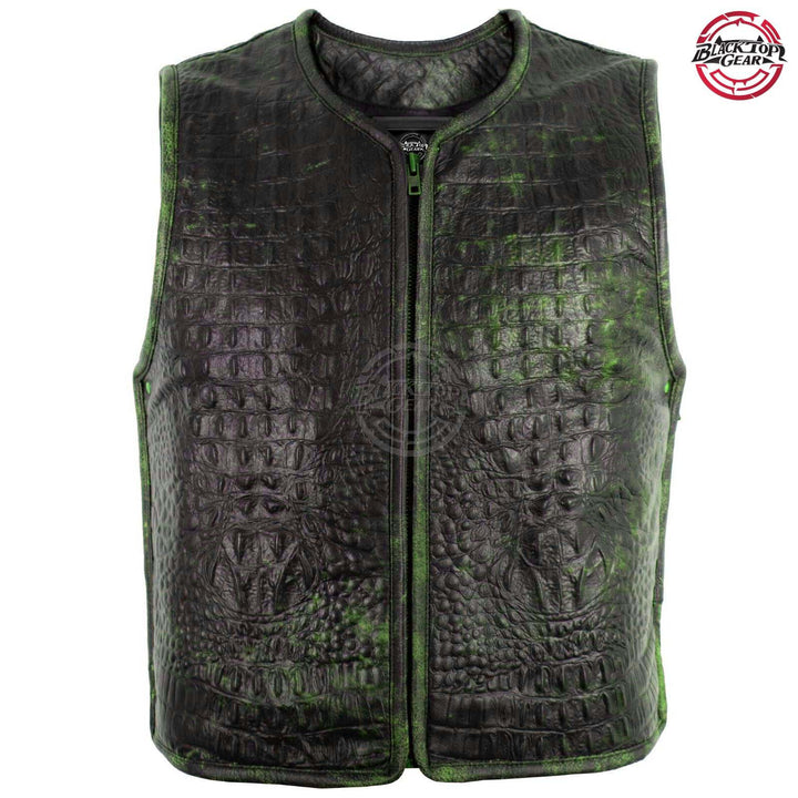 This Men's Genuine Cow Leather Vest features an alligator-embossed design, mimicking the luxurious texture of crocodile leather. Crafted from high-quality cowhide, it offers durability and a stylish, rugged look. Perfect for adding a bold, exotic touch to any outfit. Ideal for both casual and semi-formal occasions.