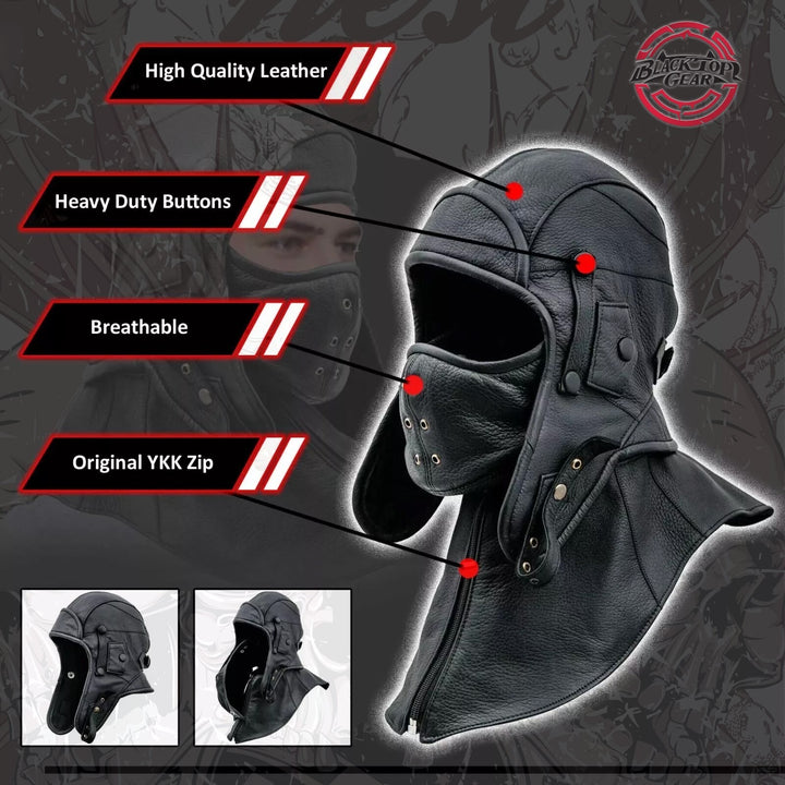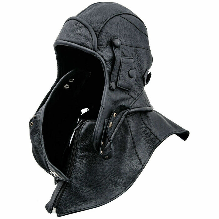 Real Leather Aviator Cap with Collar and face cover Tactical Hood Pilot Cap