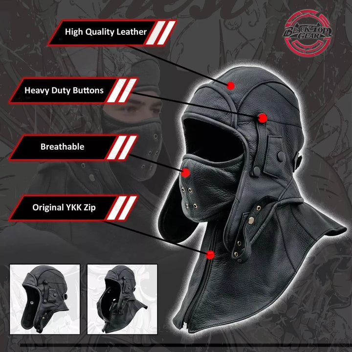 • Details: detachable collar and mask, earflaps with belt and buckle, movable visor